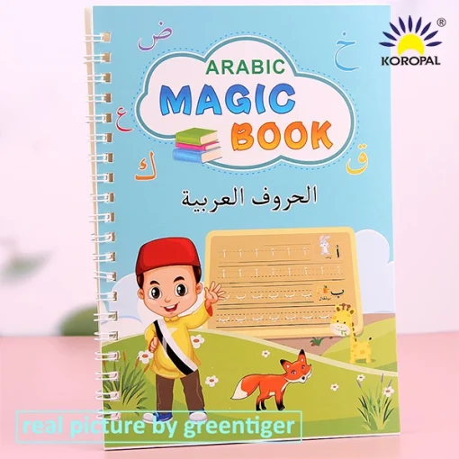 Arabic Magic Book,” which is a reusable handwriting tracing copybook designed to help children learn Arabic letters and improve their handwriting skills.