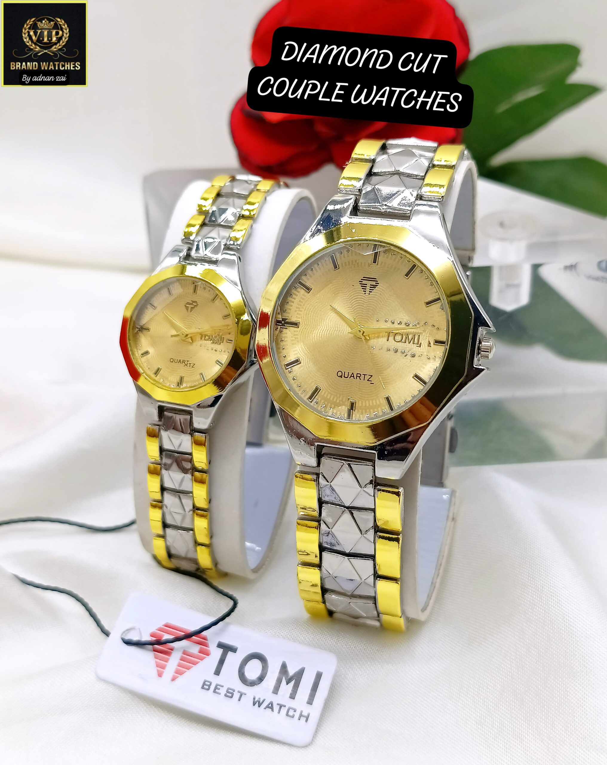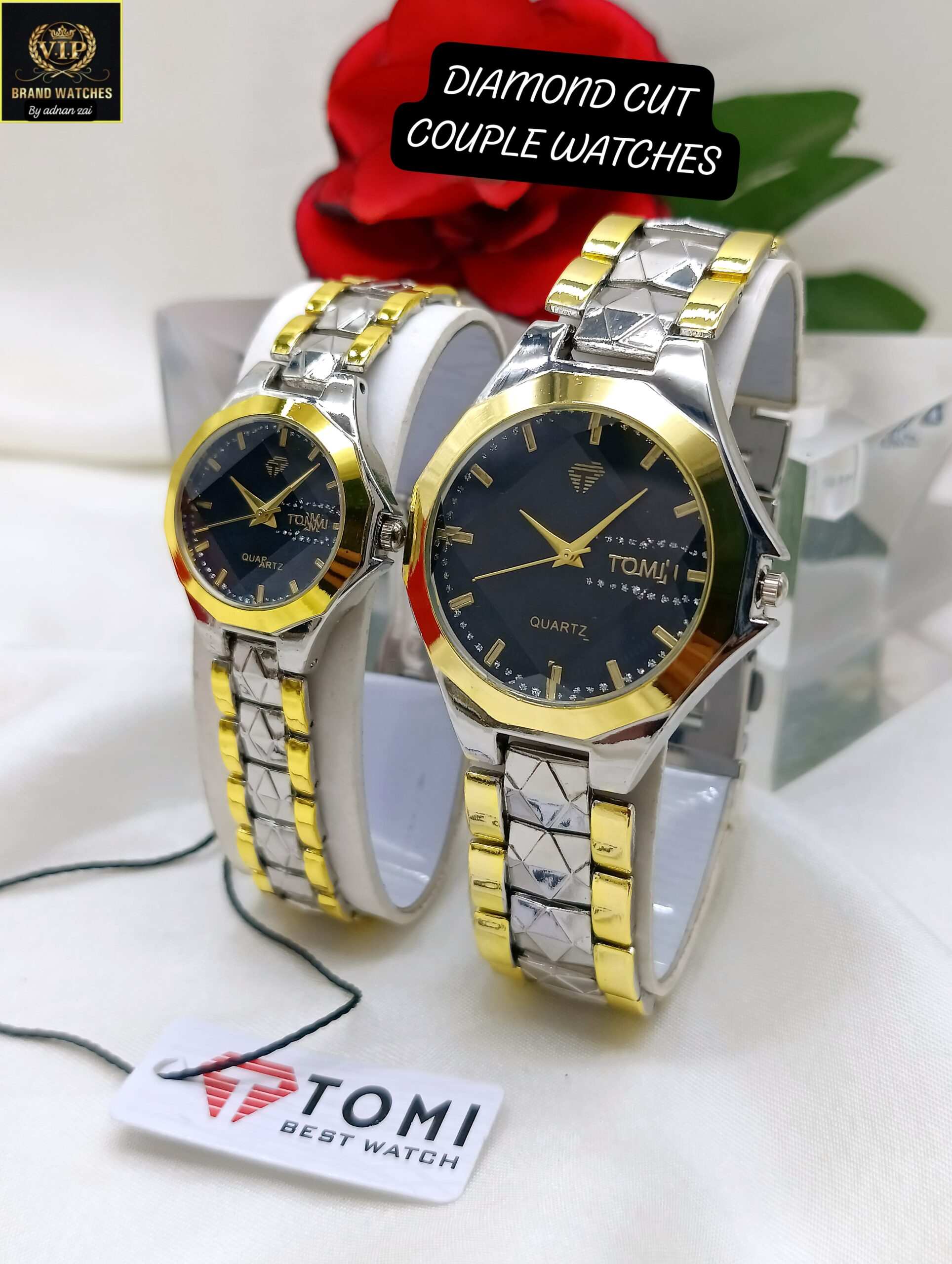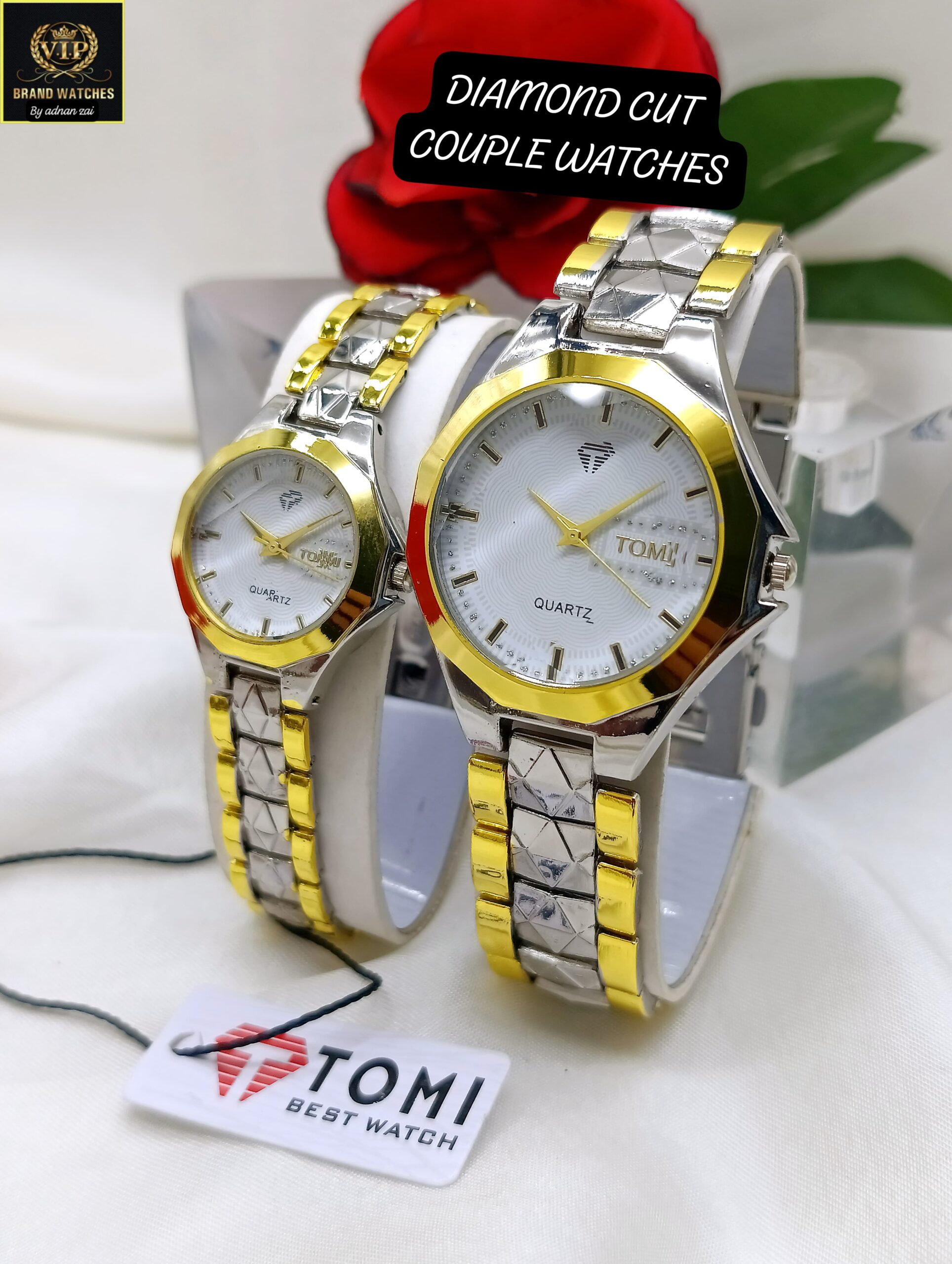 Love in Every Tick: TOMI Diamond Cut Couple Watches