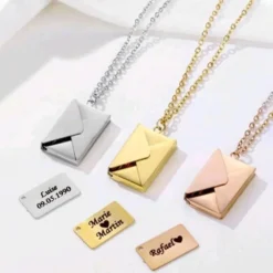 The Personalized Envelope Locket is a unique custom necklace with an elegant envelope‑style pendant that opens to reveal your engraved message, initials, or date making it the perfect sentimental gift for her. Ideal for birthdays, anniversaries, Valentine’s Day and special moments, this keepsake locket combines personal meaning with everyday elegance.